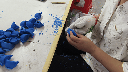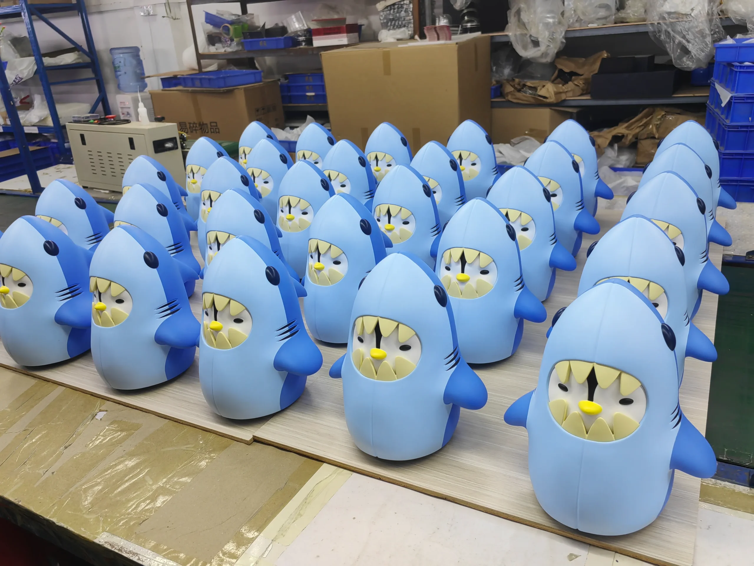 To produce Vinyl toys, one must first create a 3D model based on the design and then disassemble the 3D model according to the coloring scheme. Next, a vinyl mold is created based on the disassembled 3D model, and then toy vinyl parts are produced using the vinyl mold. The produced vinyl parts need to be manually trimmed to remove excess water gates, and the surfaces of the vinyl parts must be manually polished to make them smooth and easy to color. After that, they are sprayed with color according to the color of each component, followed by logo transfer printing. Finally, the parts are assembled and packaged into the finished vinyl toys.