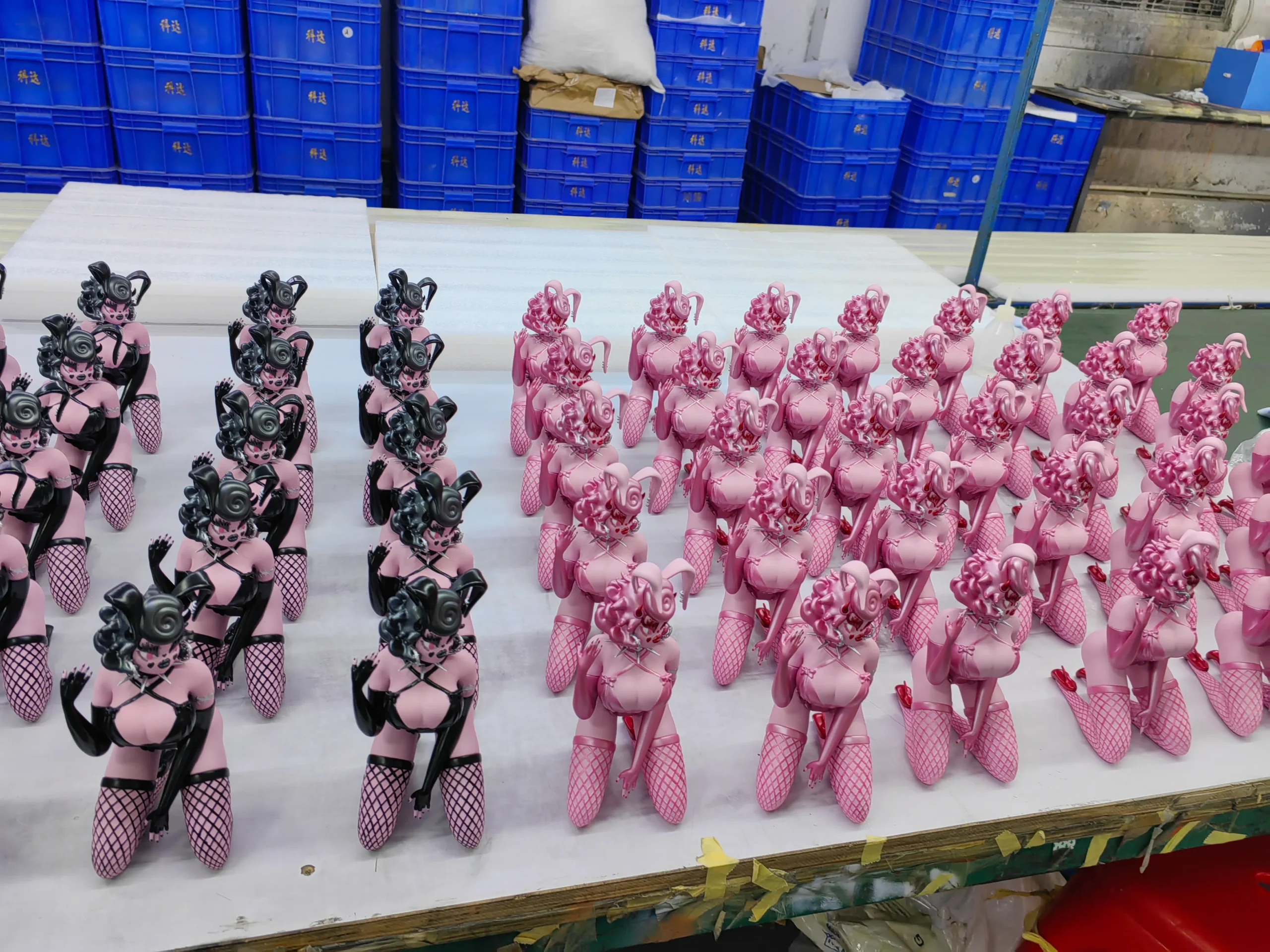 We provide regular updates during vinyl toy production, including pictures or videos of prototyping, mass production, painting, and packaging stages.